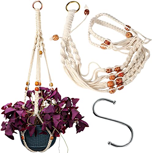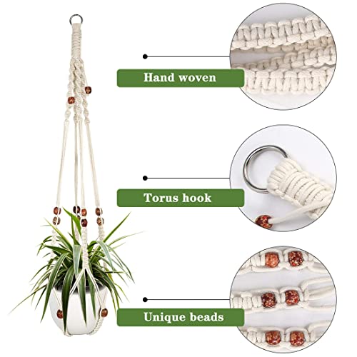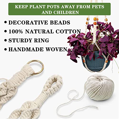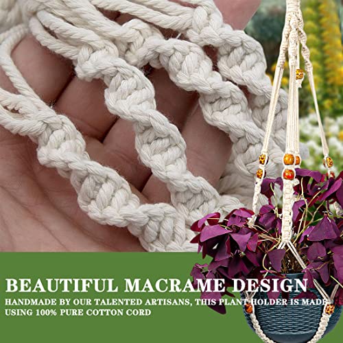 Handgemaakte plantenhanger: onze macramé hangende plantenbak is gemaakt van 100% natuurlijk katoenen touw door handgemaakt, milieuvriendelijk, geurloos, duurzaam, die verschillende planten en soorten bloempotten kan bevatten, aantrekkelijke geweven hangmand kan mode toevoegen voor uw huis