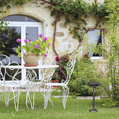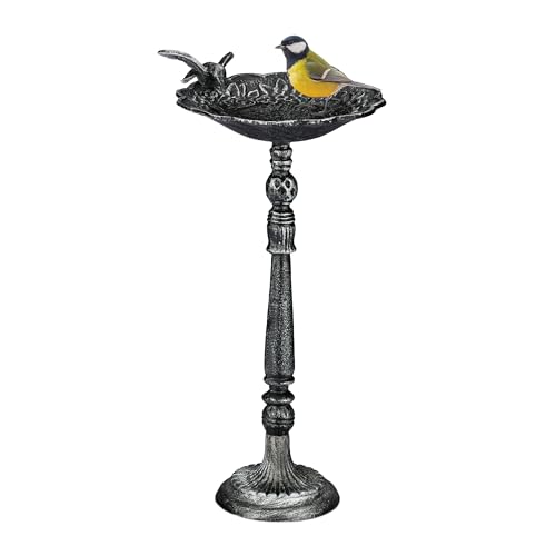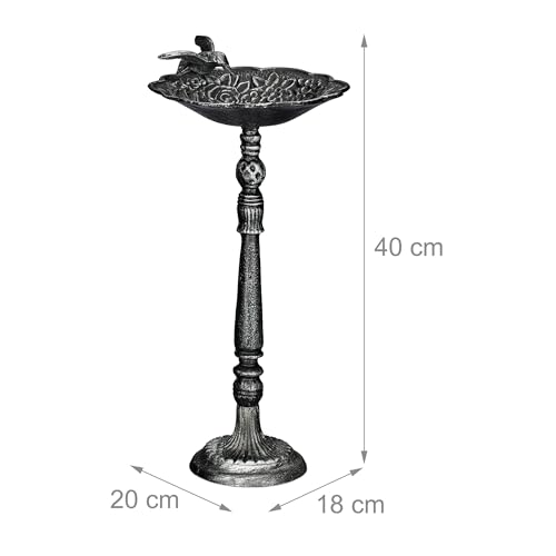 Relaxdays vogelbad op voet, antieke stijl, gietijzer, tuin & balkon, vogeldrinkschaal voor tuinvogels, zilver/zwart