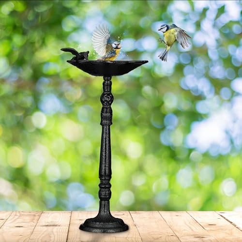 Voor tuinvogels: Vogelbad op voet voor in de tuin, op het balkon of terras – In het zilver-zwart