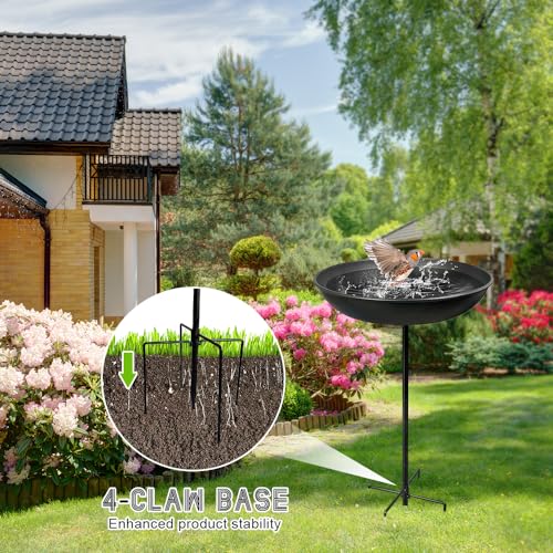 Stevige basis: Heavy Duty stalen paal met 4 massieve tanden zorgt ervoor dat dit vogelbad rechtop en stevig in de grond van je tuin blijft. Dit vogelbad is ongemakkelijk te buigen, breken of breken, dus je tuin of tuin zal het hele jaar door vol zangvogels zijn.