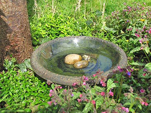 De nieuwe Coniston Bird Bath is gemaakt van materiaal genaamd Clayplas+ Dit combineert 30% gerecycled plastic inhoud met 70% klei in composietvorm om een lichtgewicht duurzame afwerking te geven die een verouderde steenafwerking nabootst Het clayplas+ materiaal wordt geleverd met een structurele integriteit van 10 jaar (exclusief accidentele schade door dieren of harde wind) Het vogelbad wordt standaard geleverd met een opnieuw ontworpen twist fit De basis vogelbad staat op een hoogte van 180mm met zijn korte steel De Coniston heeft scrollwork decoratie rond de rand van het vogelbad op een matte achtergrond Dat in tegenstelling tot de waterbak die is afgewerkt met een glanzend oppervlak Extra kiezels (niet inbegrepen) kunnen in de waterbak worden gedaan voor decoratie en om kleine vogels te laten zitten om te drinken Let op: Dit nieuwe ontwerp is niet langer compatibel met de hoge steel