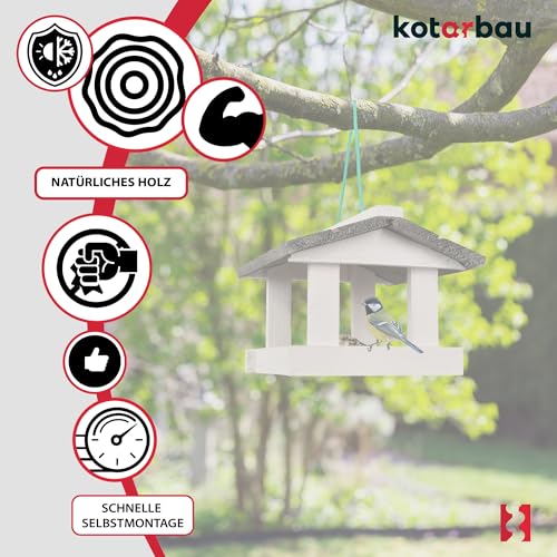 KOTARBAU® Vogelhuis om op te hangen, vogelvoederdispenser, voederhuis voor vogels, voederstations voor wilde vogels, vogelhuis, balkon, vogelvoederhuis, vogelvoederhuis van hout + 0,5 kg voer gratis