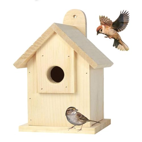 YIHAOBOX Meisen nestkast voor wilde vogels, hout, vogelhuisje met veilige bescherming tegen nestroof, weerbestendig, om op te hangen, voor buiten, mezen, nestkast voor koolmezen en pimpelmezen