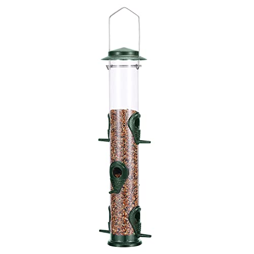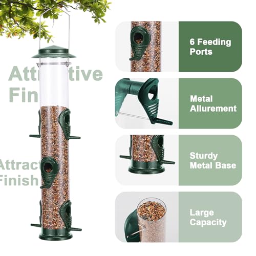 MIXXIDEA Kolibrie Feeder, eekhoornbestendige vogelvoeders voor buiten hangende metalen wilde vogelvoeder 6 poortbuis vogelvoeder transparante vinkvoeder met stalen hanger – groene vogelzaadfeeder