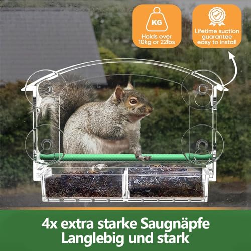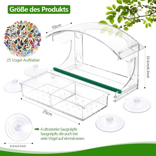 【Raamvoederhuisje acryl】: er zijn twee maten venstervoederhuisjes voor vogels: 21,5 x 20,5 cm / 25 x 15,5 cm. Ons vogelhuisje is gemaakt van 100% acryl, is sterk en duurzaam en biedt een lange levensduur, vervaagt niet gemakkelijk, geurneutraal en onbreekbaar, zodat het dak van de voederautomaat bestand is tegen verschillende weersomstandigheden om het binnendringen van regen en sneeuw te voorkomen