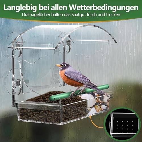 Transparant vogelhuisje: met dit zeer transparante vogelhuisje kun je de vogels buiten het kamerraam duidelijk observeren. In ons transparante vogelhuis kun je je favoriete vogels vanuit de keuken, het werkgebied of het slaapkamerraam observeren. Zo kun je alle kleurrijke bewegingen van dichtbij met levendige details vastleggen