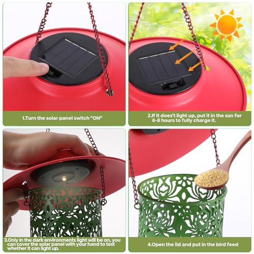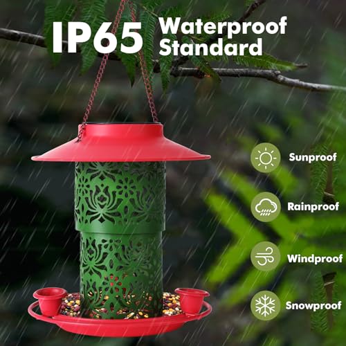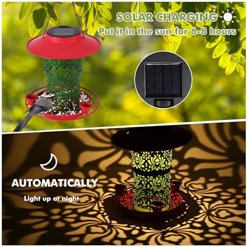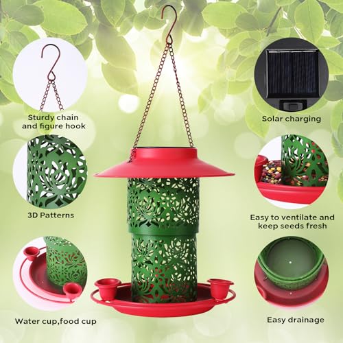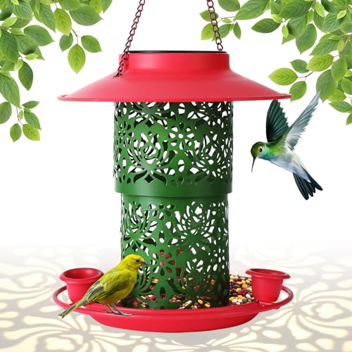 Wikay Vogelvoeders ophangen, vogelzaadvoeder, vogelvoederbak op zonne-energie om buiten op te hangen, metalen vogelvoederbak voor tuin, eekhoornbestendige vogelvoeder, tuindecoratie, perfecte ideeën